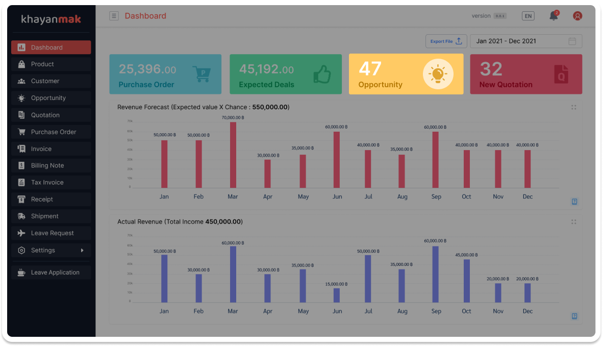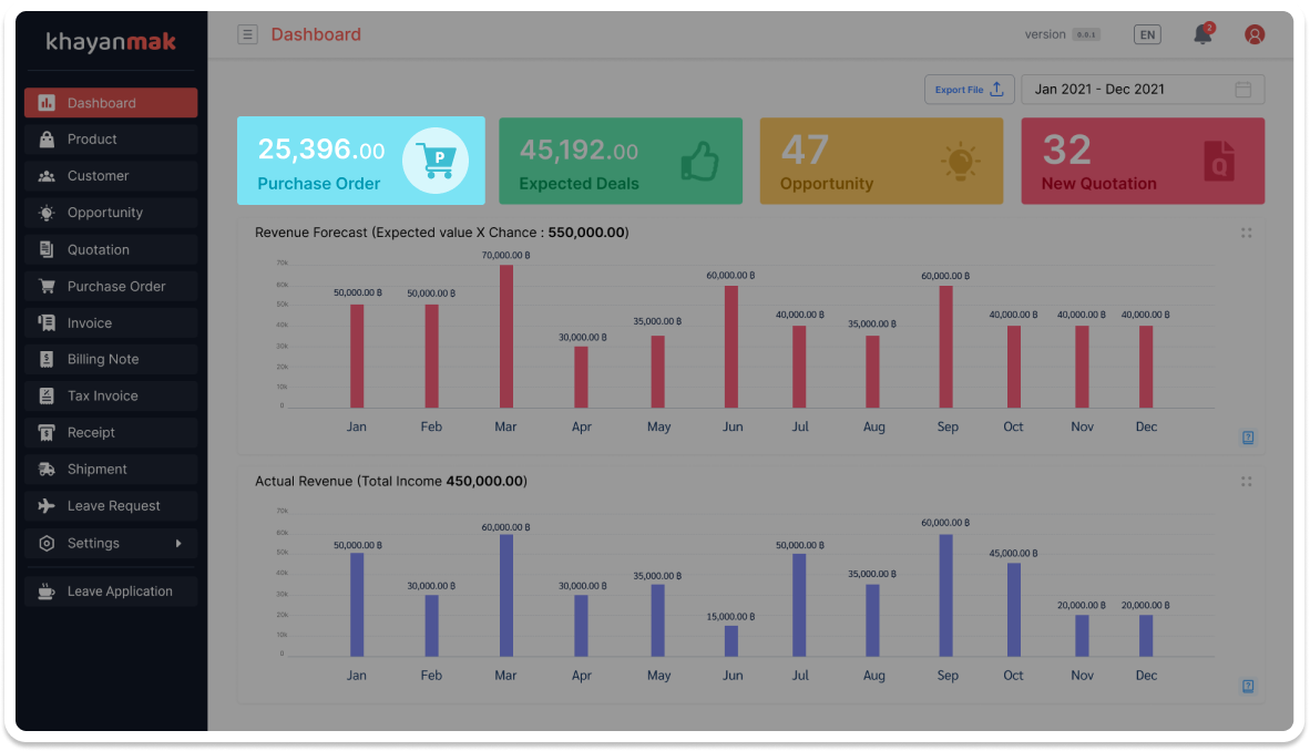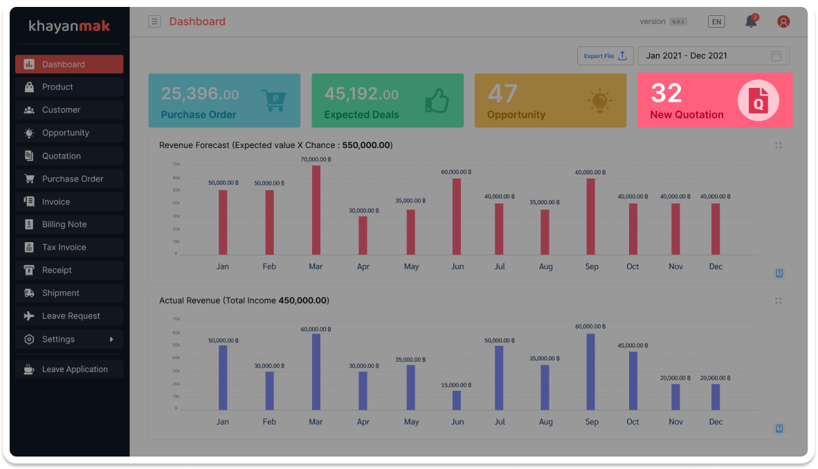 New Quotation แสดงจำนวนใบเสนอราคาที่สร้างขึ้นใหม่ในแต่ละเดือน เพื่อให้ทราบว่ามีจำนวนใบเสนอราคาที่สร้างขึ้นมาทั้งหมดจำนวนกี่ใบ จะได้นำไปวางแผนการขายต่อไป