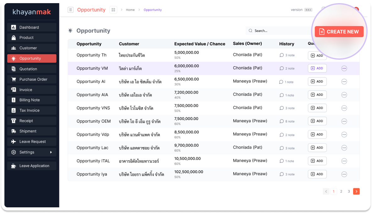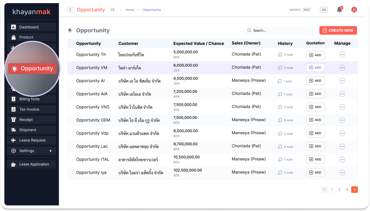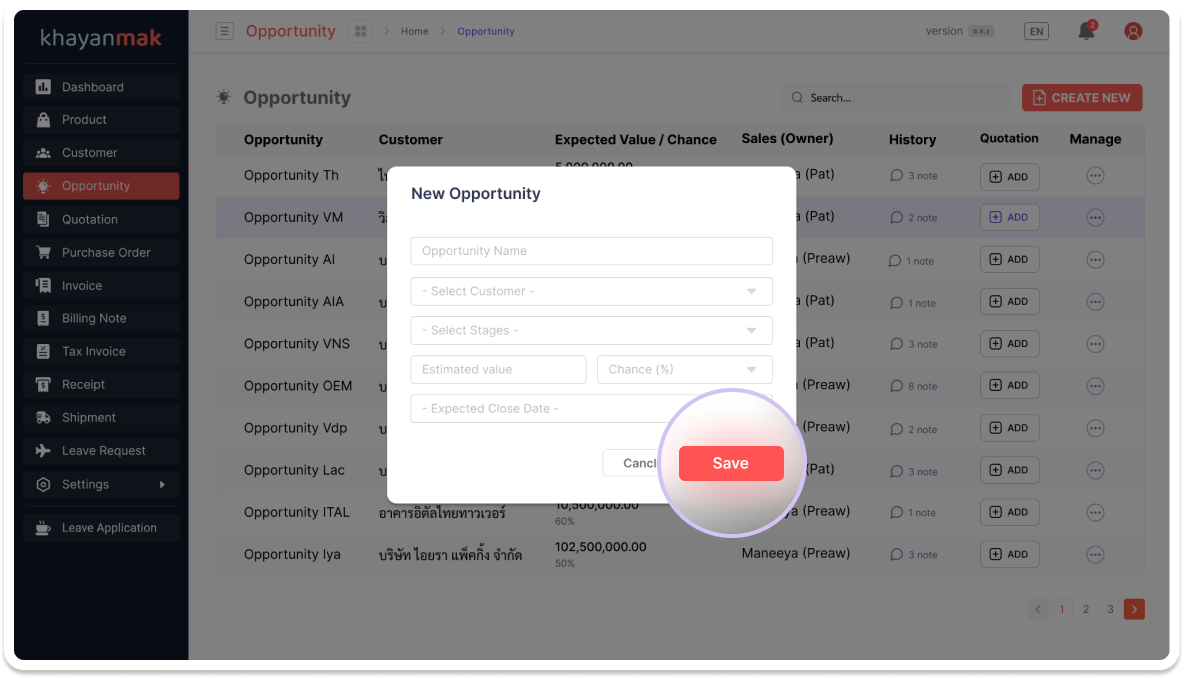 > วิธีการสร้าง Opportunity การขายใน Khayanmak