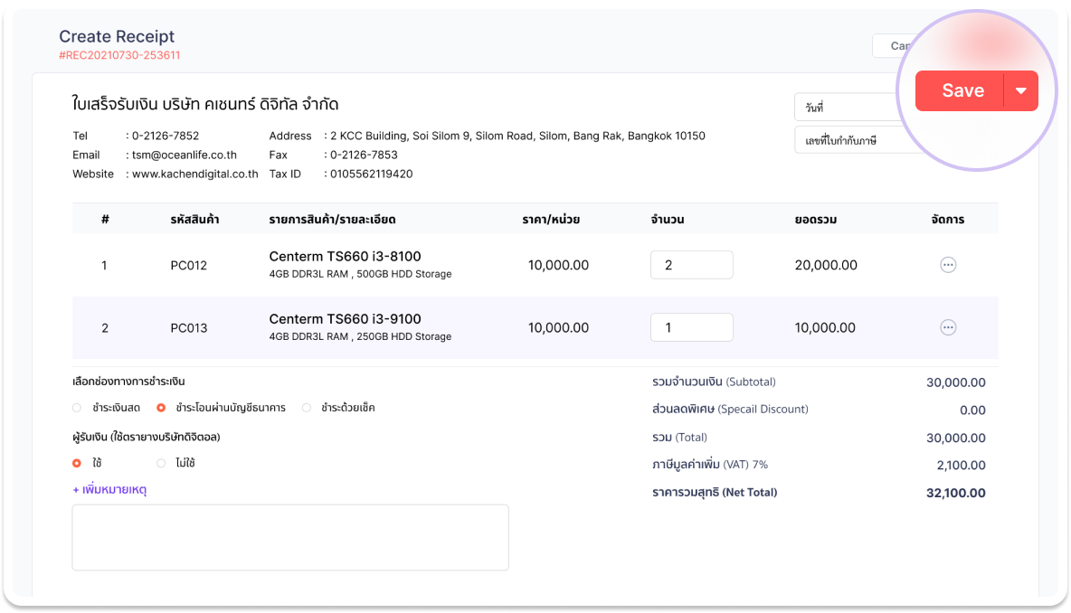 Step 3 - ทำรายการออกใบเสร็จรับเงินได้เลย
